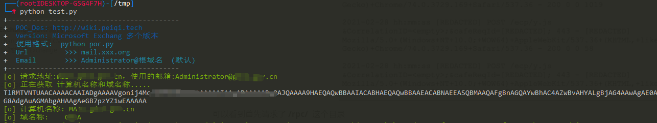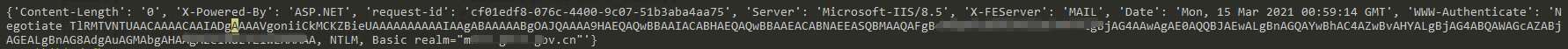 根据网上公布的 POC与EXP,可以看到 NTML协商消息会返回我们NTML询问信息, 其中包含了 AV_PAIR结构,其中包含了 后端服务器名称与域名
