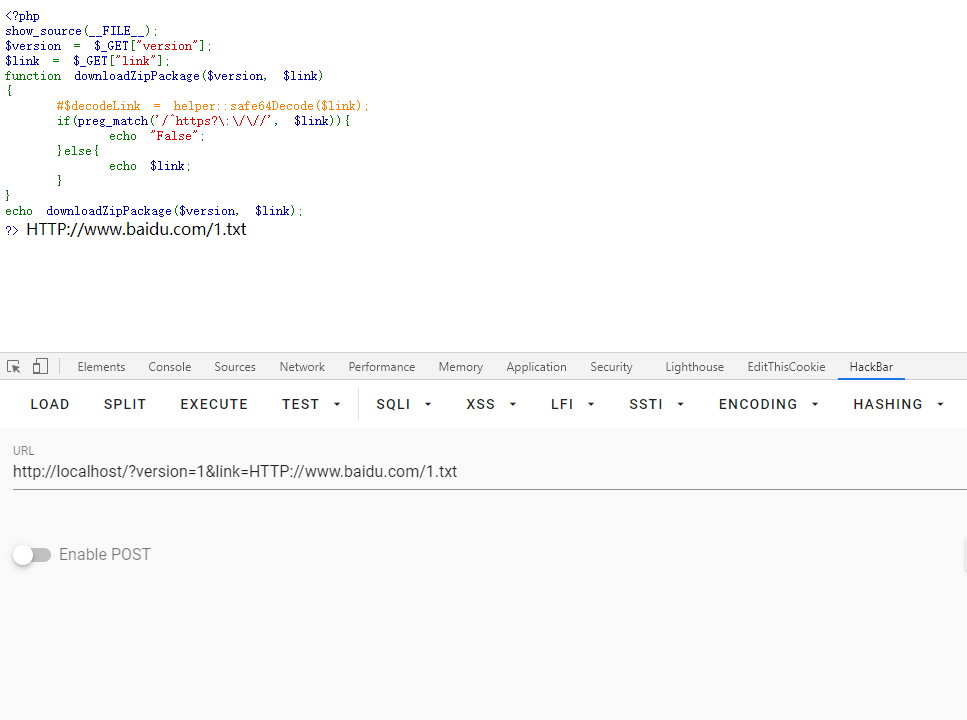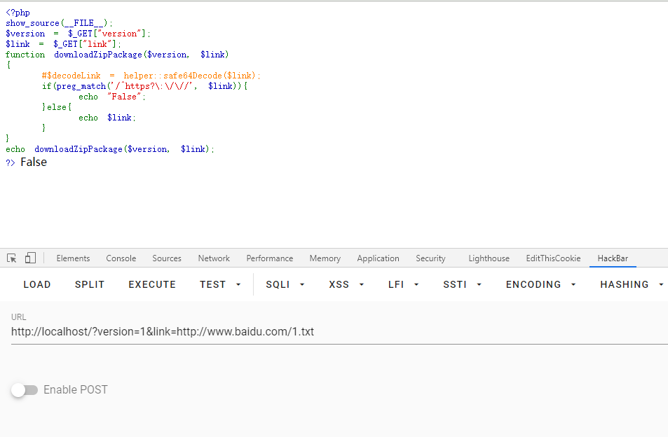 这里传入的参数为版本和link地址,然后base64解码,正则判断是否为http或https协议,这里的正则过滤并不完整,所以可以绕过用于下载恶意文件