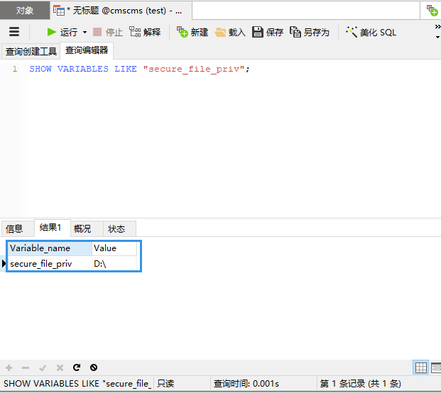 通过这里的语句可以看到我们可以使用 union注入 的方法来写入恶意文件(secure_file_priv不能为Null)