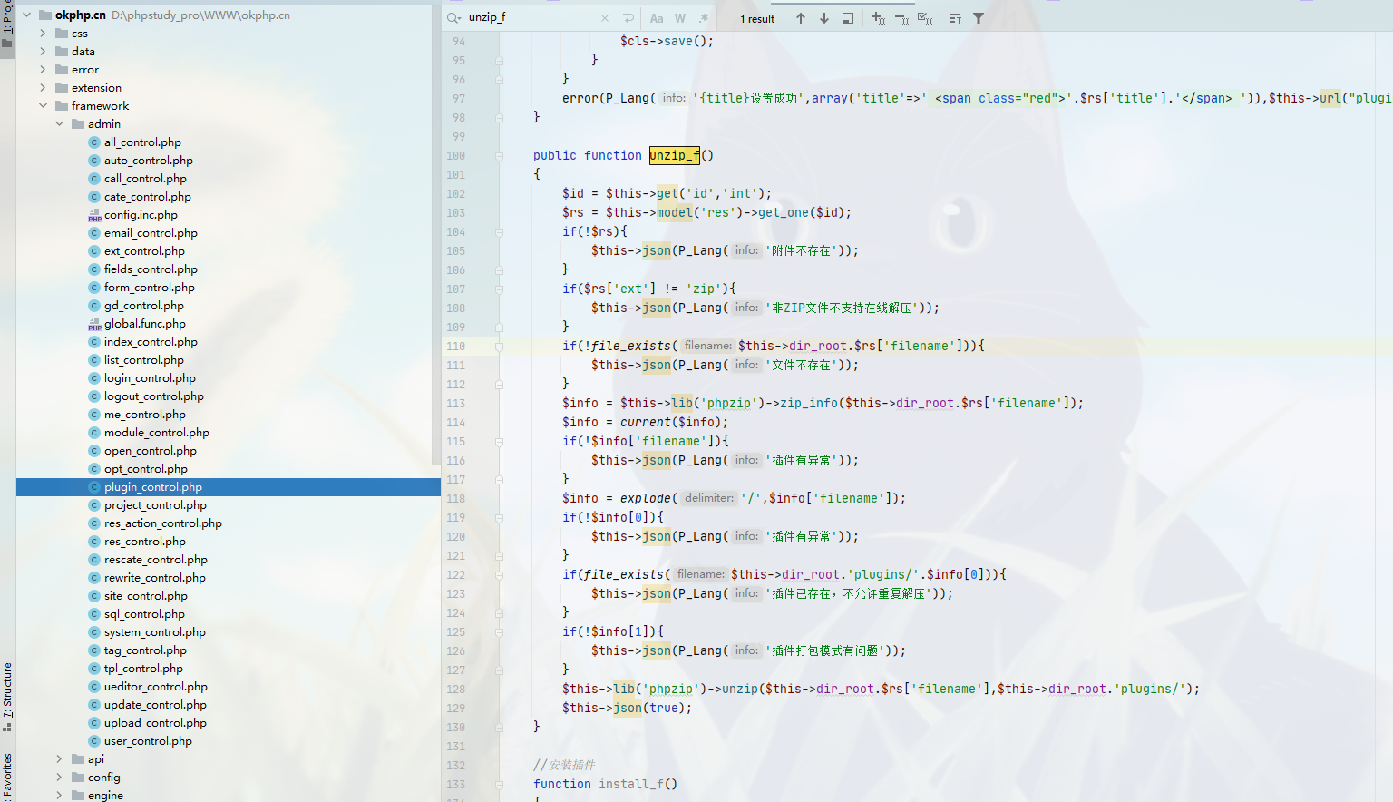 出现漏洞的位置在于framework/admin/plugin_control.php