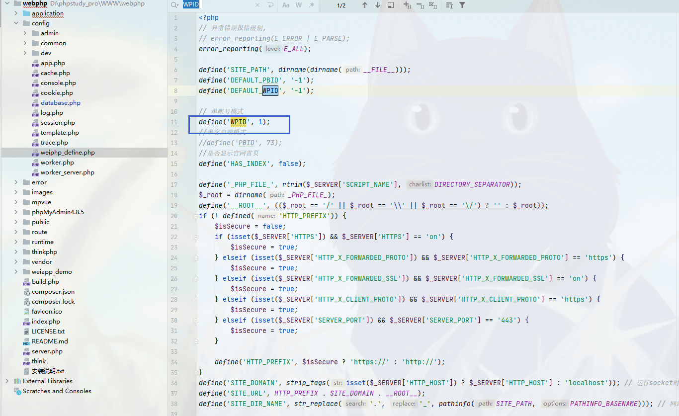 查看 WPID 的定义,文件位置在config\weiphp_define.php