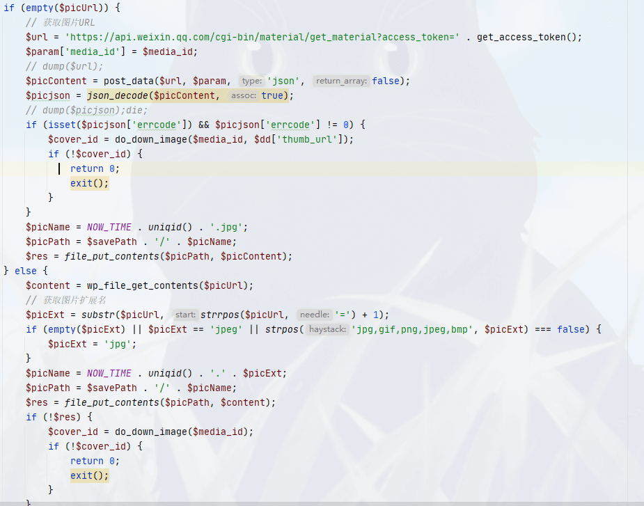 分析传入变量 picUrl 的 wp_file_get_contents方法