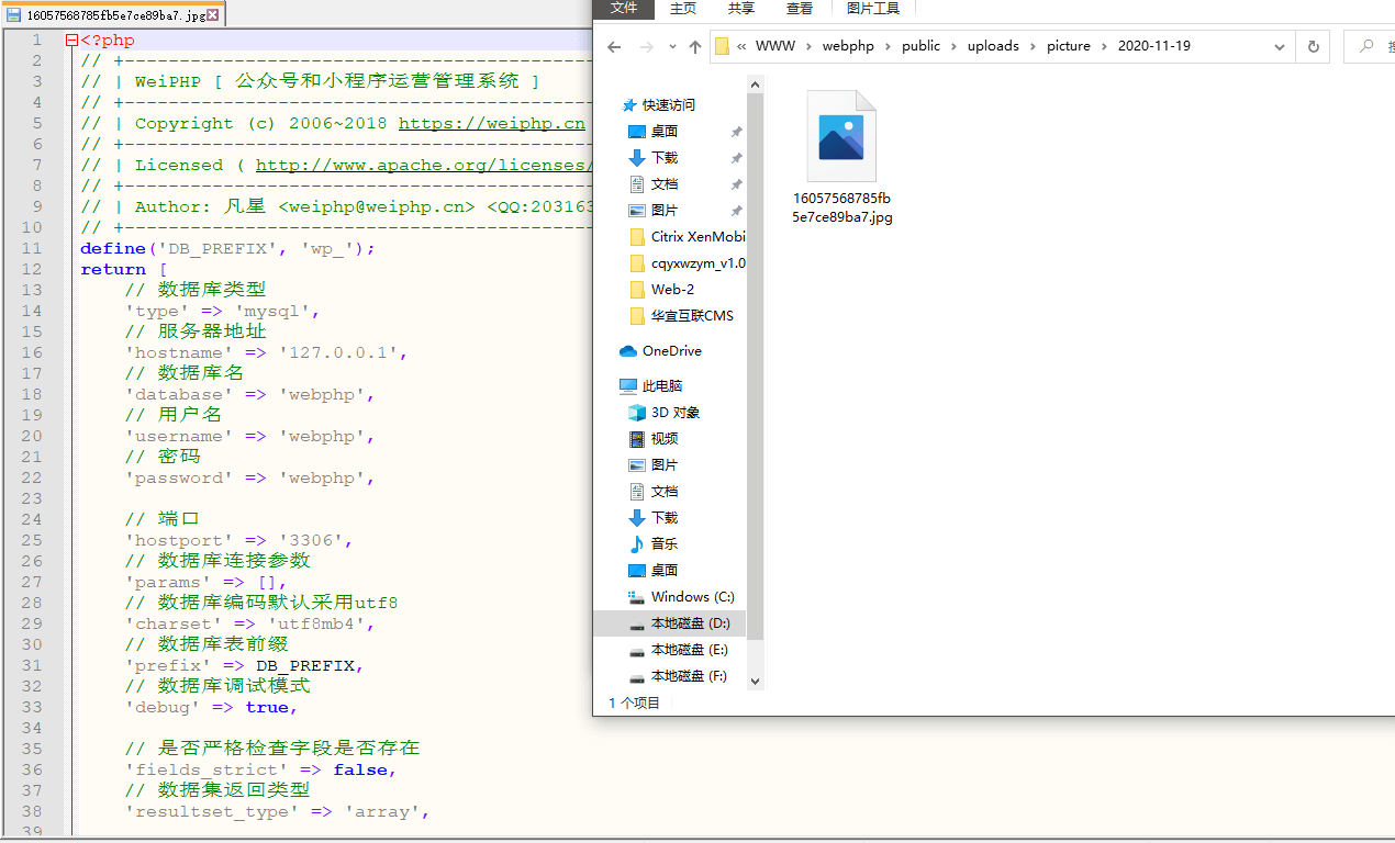 我们先尝试控制变量 $picUrl 来写入数据库配置文件到图片中