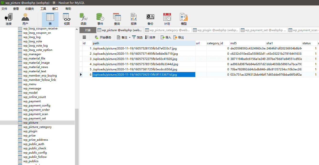 我们查看一下数据库的这个数据表,可以发现之前所上传的数据全部缓存在这个表里了