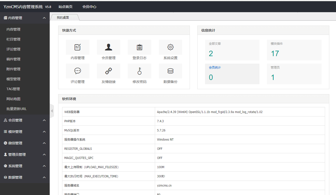 YzmCMS内容管理系统是一款轻量级开源内容管理系统,它采用自主研发的框架YZMPHP开发。程序基于PHP+Mysql架构,并采用MVC框架式开发的一款高效开源的内容管理系统,可运行在Linux、Windows、MacOSX、Solaris等各种平台上。