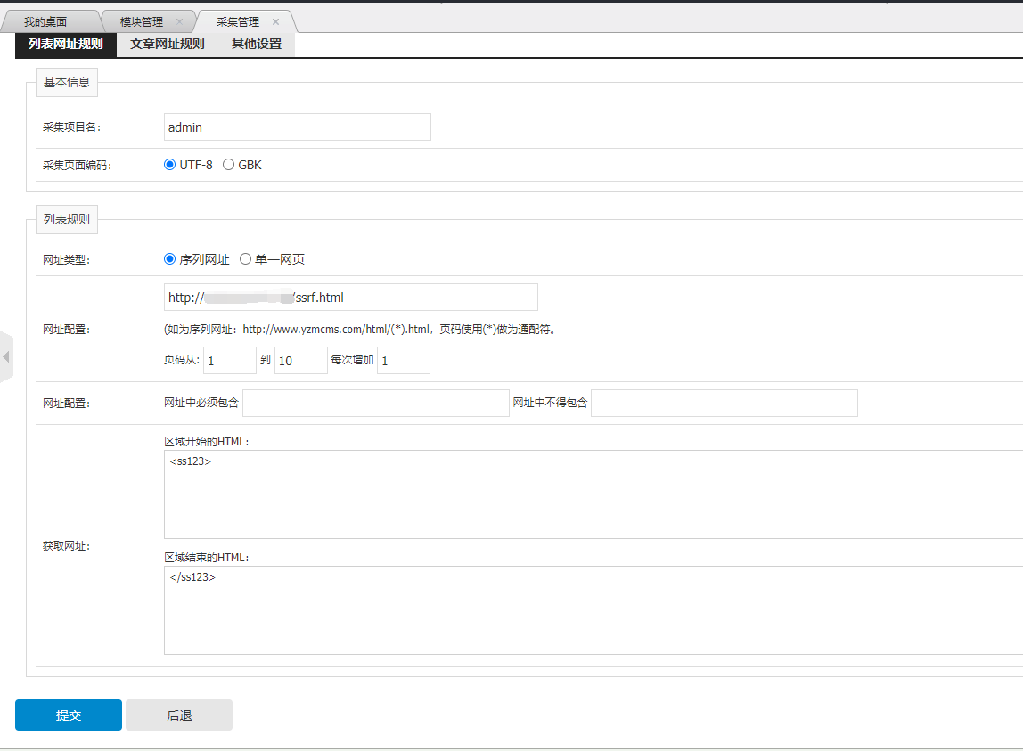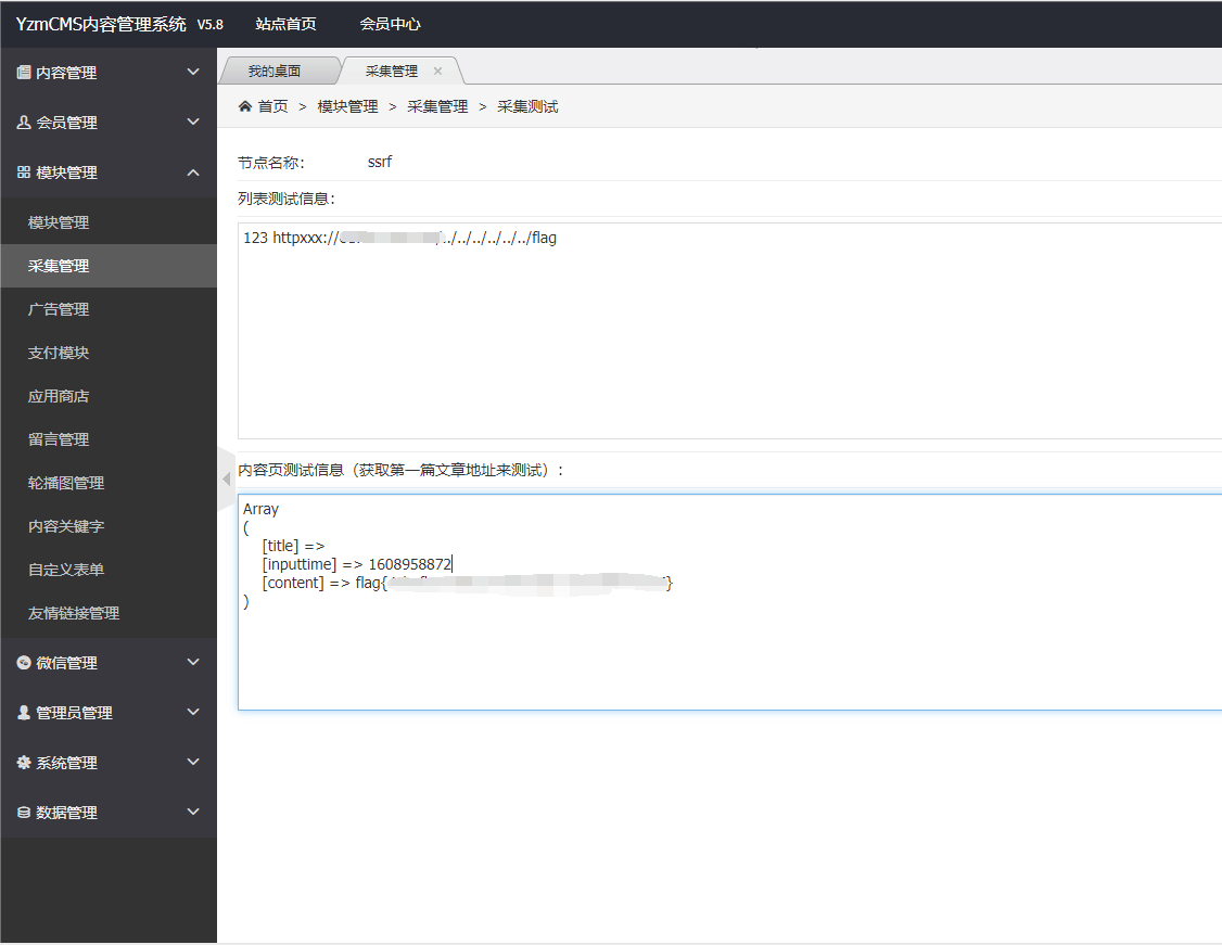 YzmCMS version < V5.8正式版 后台采集模块 SSRF漏洞