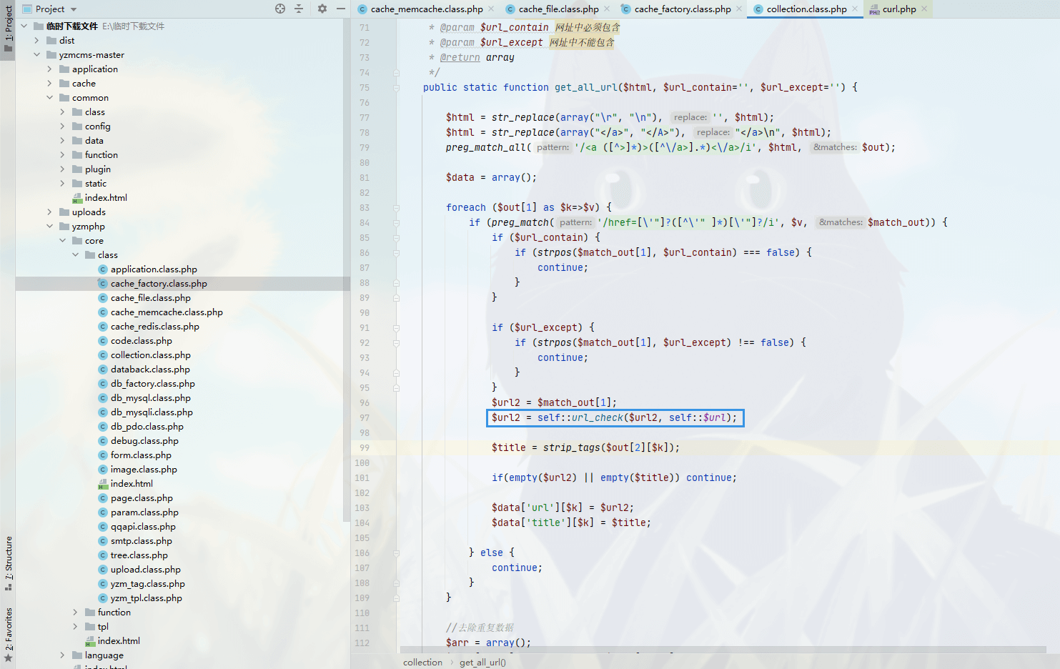 出现漏洞的代码位置 yzmcms/yzmphp/core/class/cache_factory.class.php