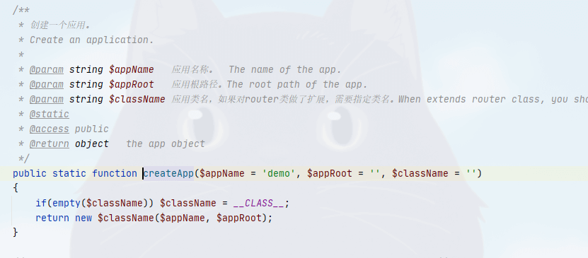 public static function createApp($appName = 'demo', $appRoot = '', $className = '')