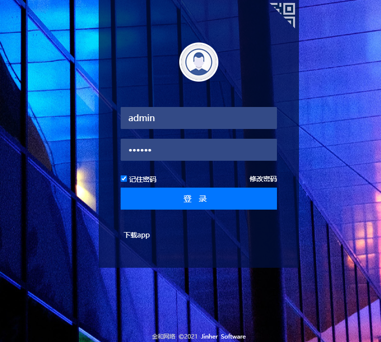 金和OA C6 存在管理员默认账户口令 admin/000000 ,攻击者将以管理员身份登陆后台