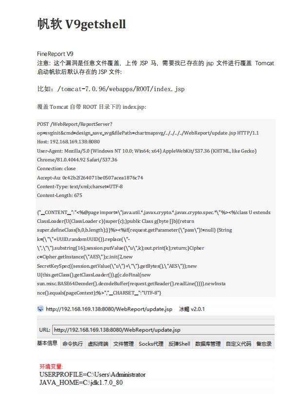 帆软 V9 存在任意文件覆盖,导致攻击者可以任意文件上传