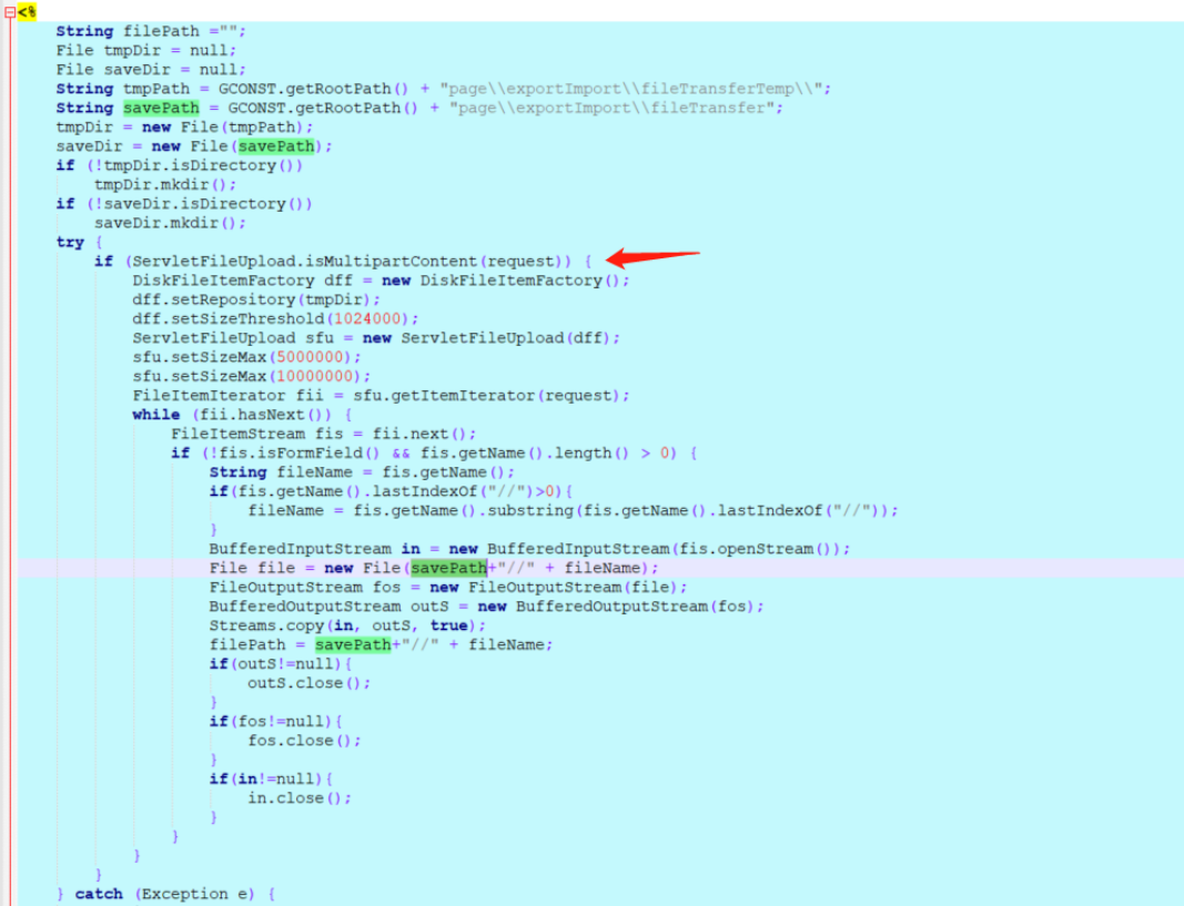 漏洞位于: /page/exportImport/uploadOperation.jsp文件中
