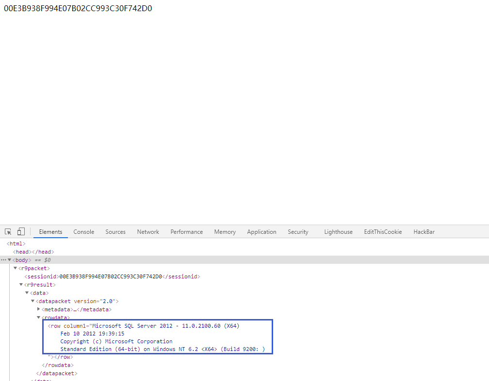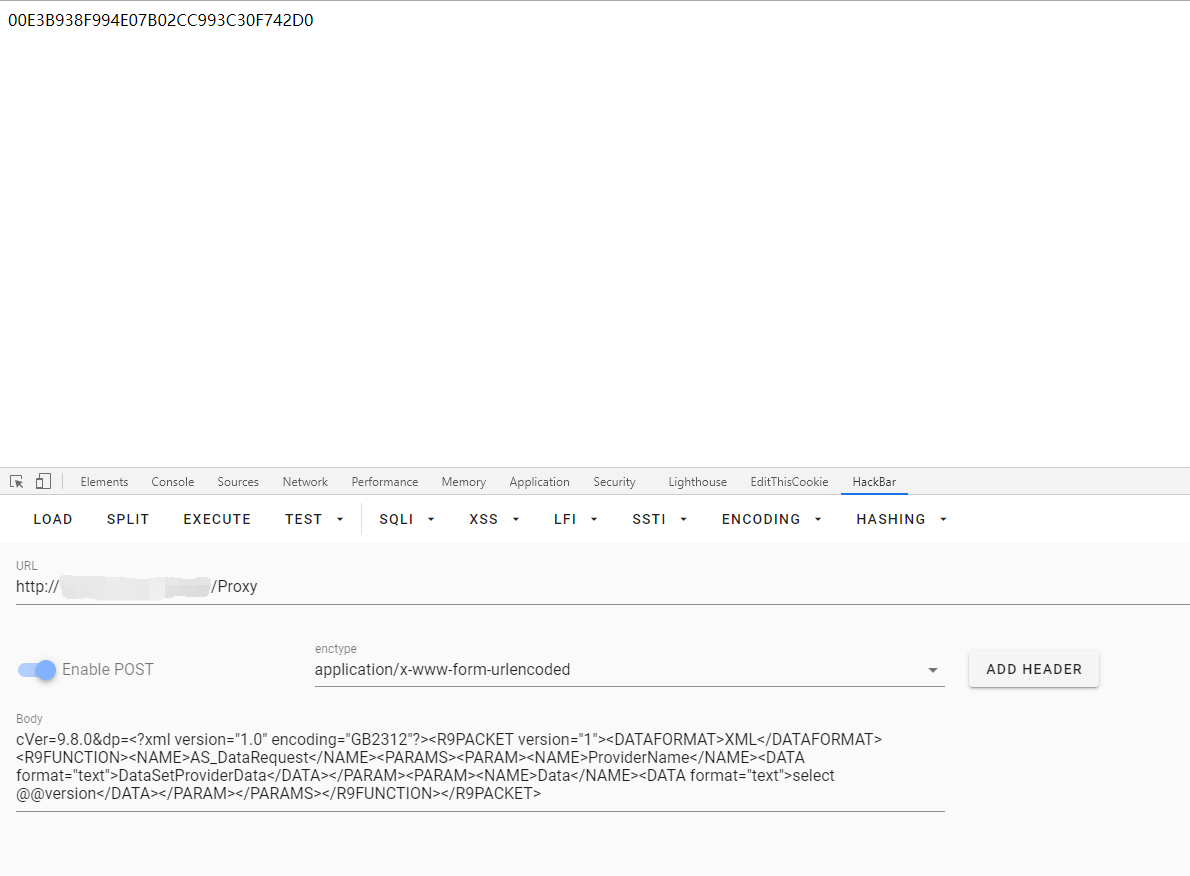 cVer=9.8.0&dp=<?xml version="1.0" encoding="GB2312"?><R9PACKET version="1"><DATAFORMAT>XML</DATAFORMAT><R9FUNCTION> <NAME>AS_DataRequest</NAME><PARAMS><PARAM> <NAME>ProviderName</NAME><DATA format="text">DataSetProviderData</DATA></PARAM><PARAM> <NAME>Data</NAME><DATA format="text">select @@version</DATA></PARAM></PARAMS> </R9FUNCTION></R9PACKET>