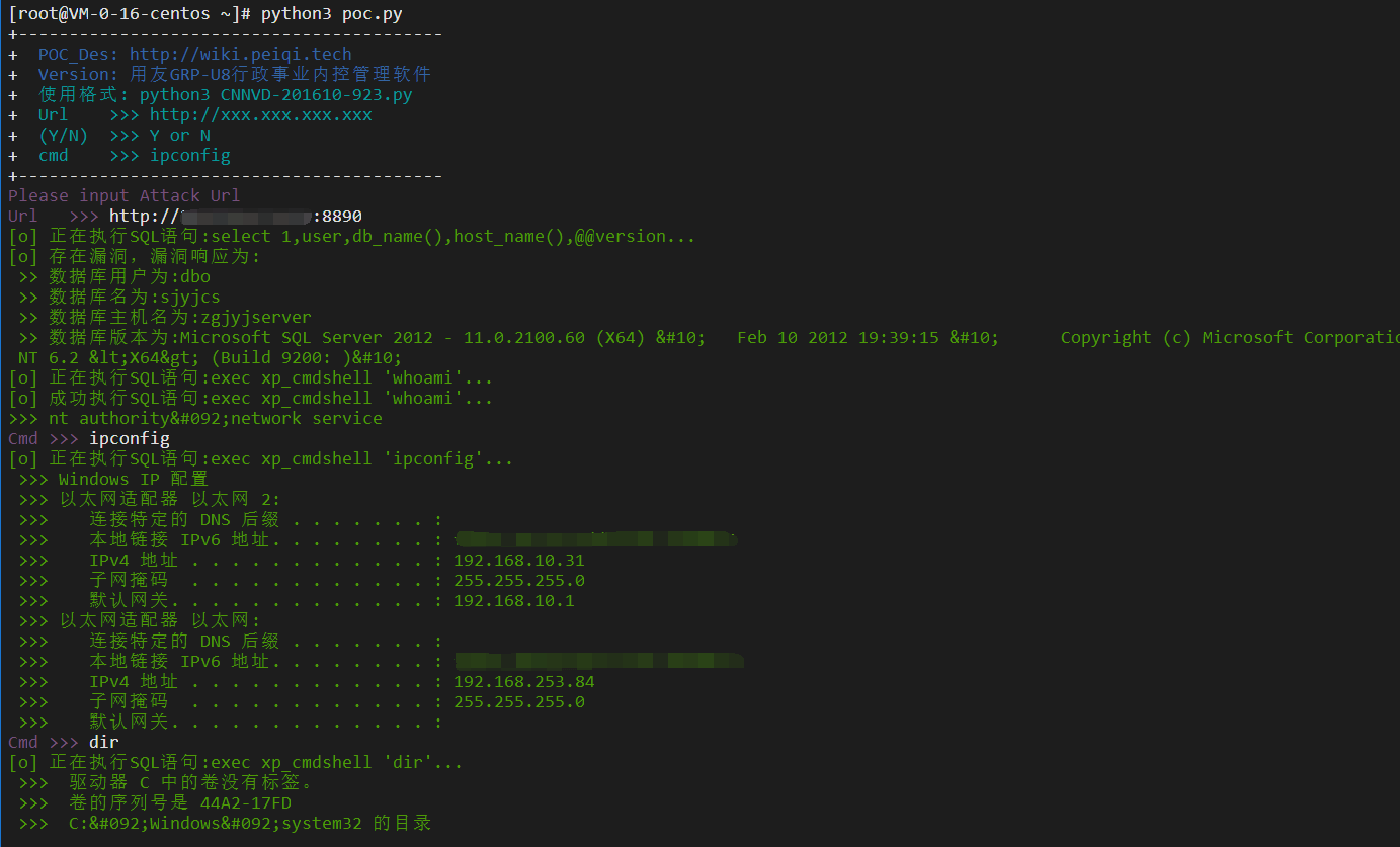 用友GRP-u8存在XXE漏洞,该漏洞源于应用程序解析XML输入时没有进制外部实体的加载,导致可加载外部SQL语句,以及命令执行
