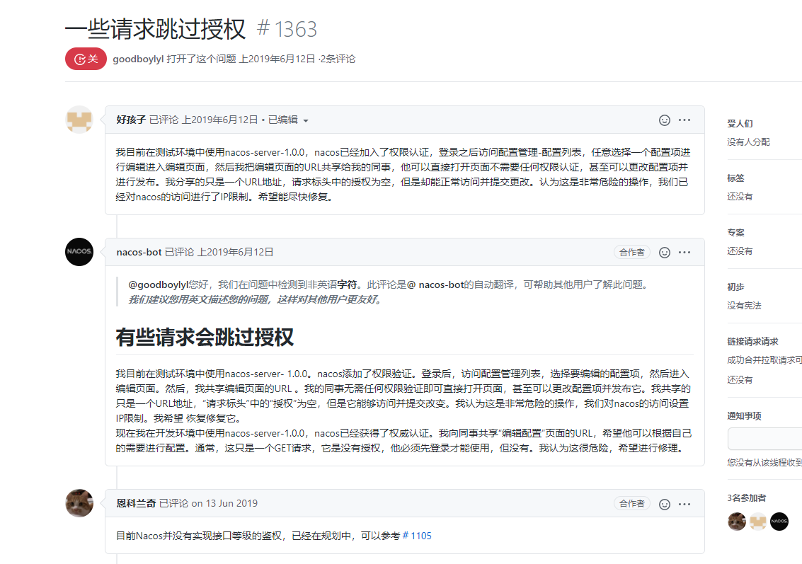 可以再项目的 issues 中看到大量的关于越权的安全问题的讨论