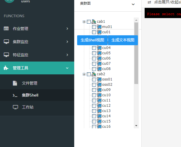 注意参数 node 中的 cu01 需要为shell集群中的存在主机