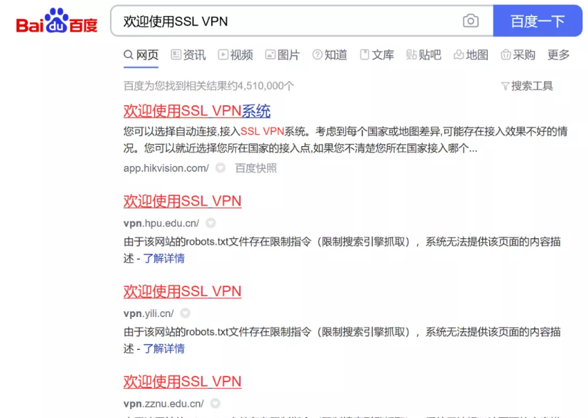 百度"intitle: 欢迎使用SSL VPN",随便找一个地方下载VPN客户端下载安装: