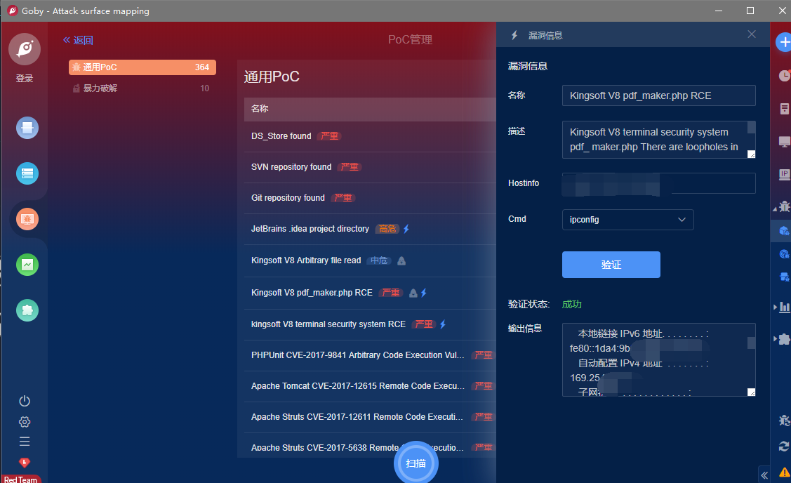 print("\033[32m[o] 目标 {} 存在漏洞 ,执行 ipconfig, 响应为:\n{} \033[0m".format(target_url, response.text))