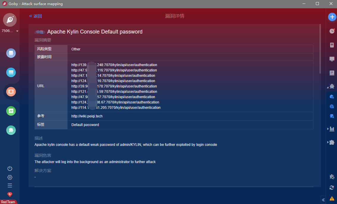 Apache Kylin Console 控制台存在默认弱口令 admin:KYLIN,可被登录控制台进一步利用其他漏洞