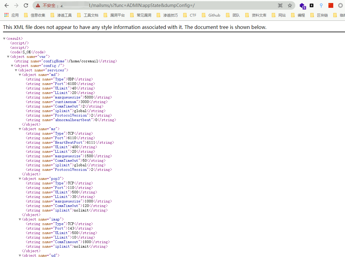 Coremail 某个接口存在配置信息泄露漏洞,其中存在端口,配置信息等