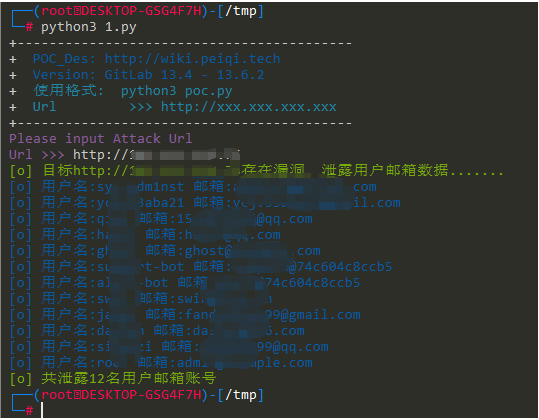 成功返回数据,造成 Gitlab的用户邮箱信息泄露