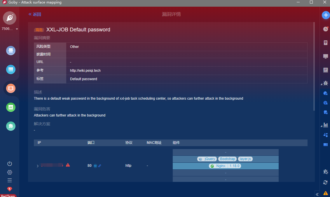 XXL-JOB 任务调度中心 后台存在默认弱口令,攻击者可以在后台进一步攻击