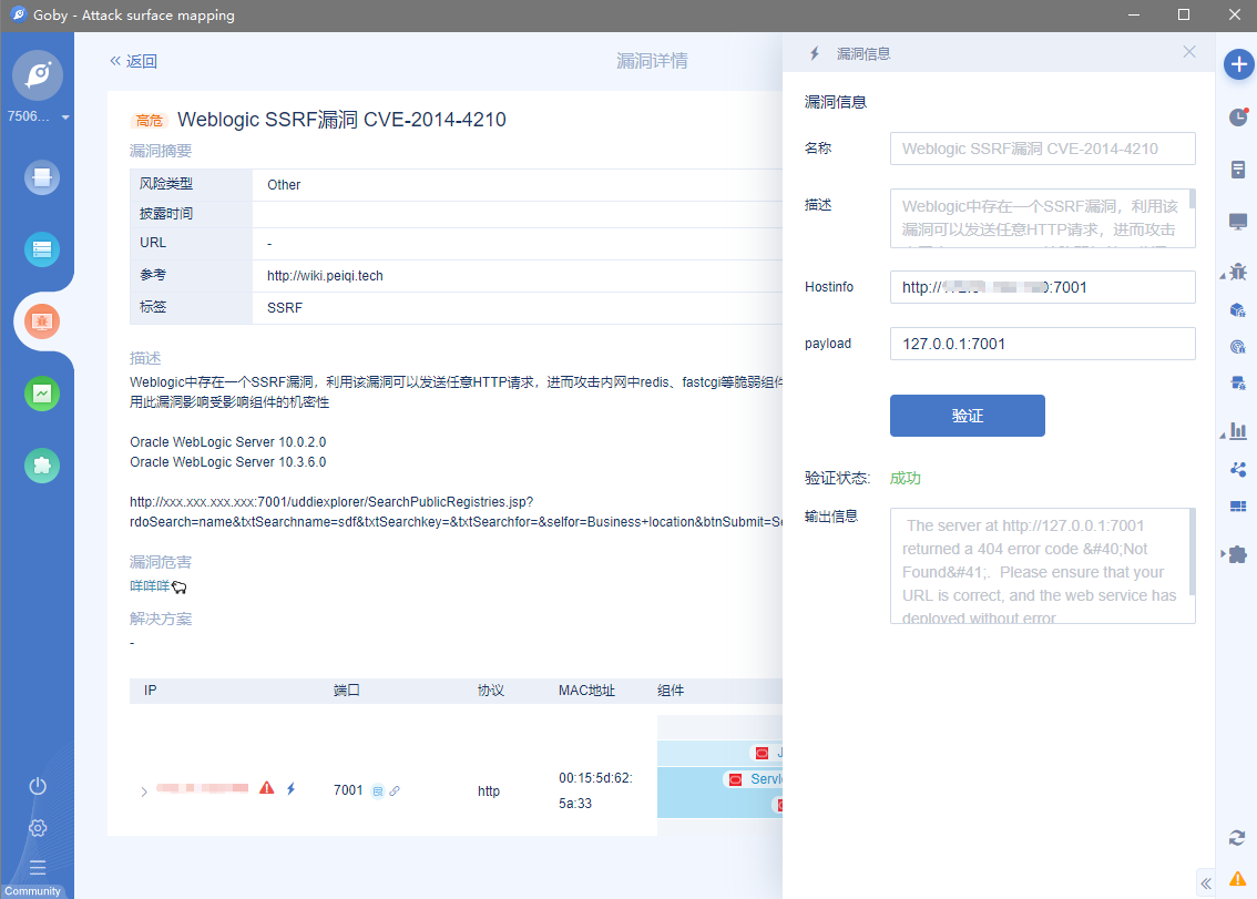 Weblogic中存在一个SSRF漏洞,利用该漏洞可以发送任意HTTP请求,进而攻击内网中redis、fastcgi等脆弱组件,此漏洞可通过HTTP协议利用,未经身份验证的远程攻击者可利用此漏洞影响受影响组件的机密性