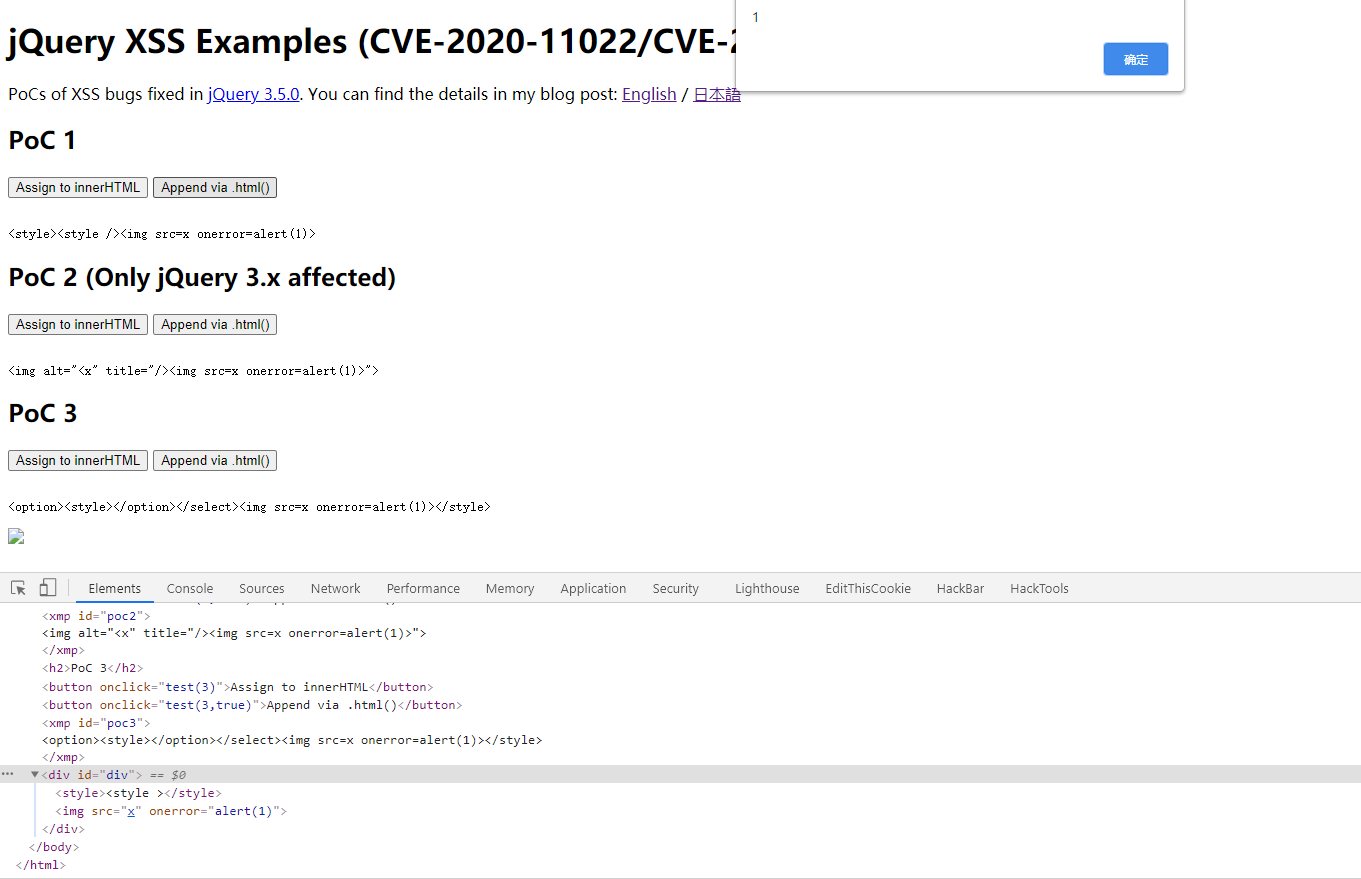 PoC 1和PoC 2具有相同的根本原因。在中.html(),作为参数传递的HTML字符串将传递到 $ .htmlPrefilter()方法。该htmlPrefilter处理用于替换自闭合标签等进行到,通过使用以下正则表达式:<tagname **/>**``<tagname ></tagname>