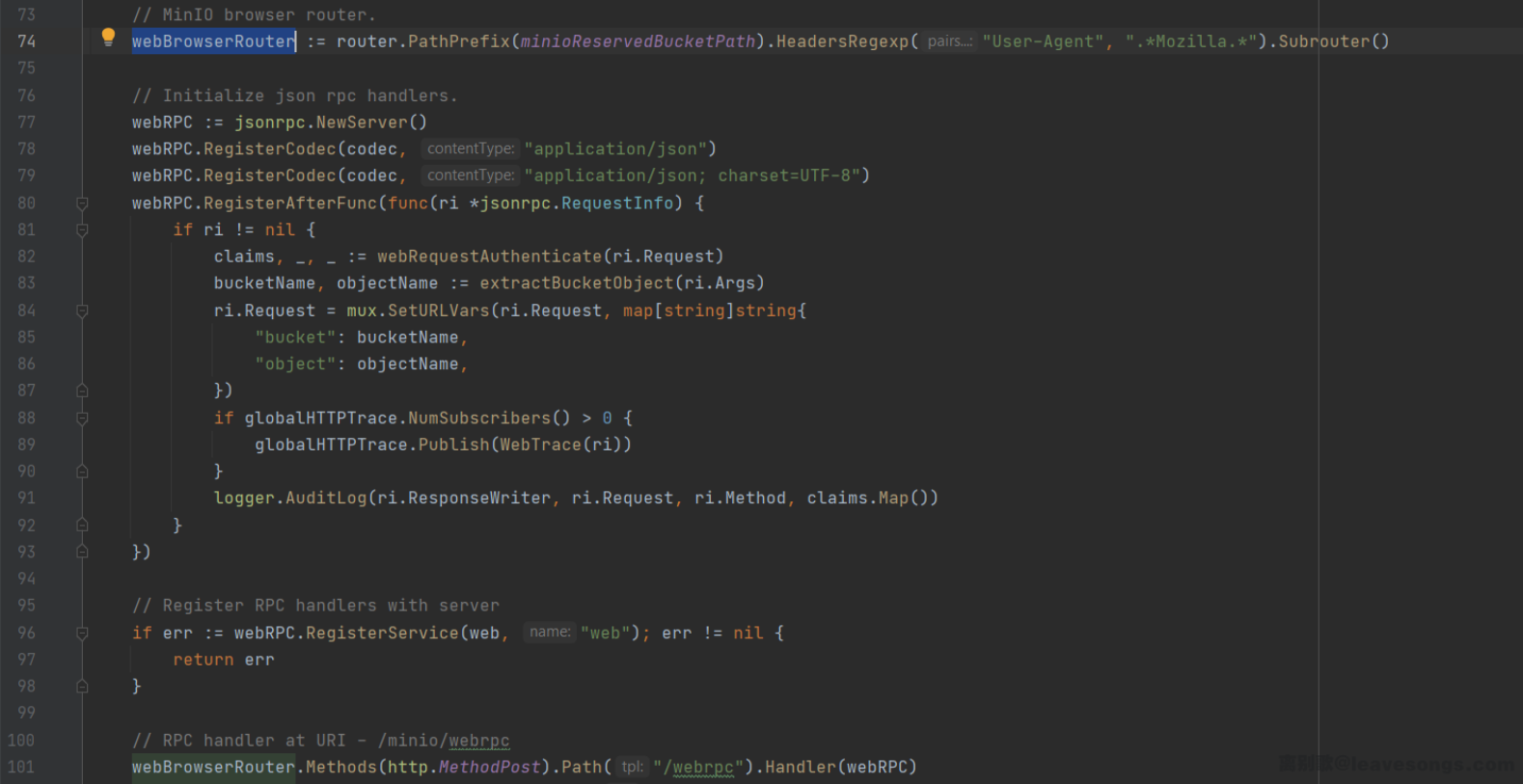 在User-Agent满足正则.*Mozilla.*的情况下,我们即可访问MinIO的前端接口,前端接口是一个自己实现的JsonRPC: