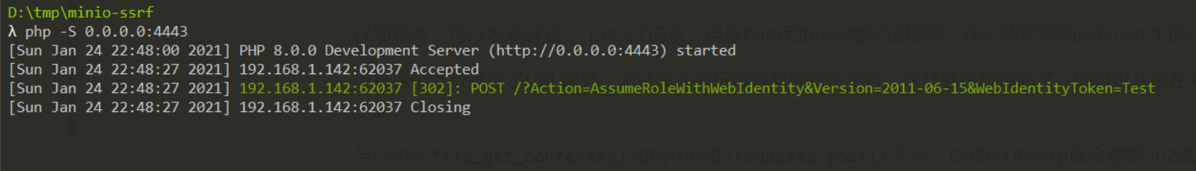 还记得我们是怎样获得这个GET型的SSRF的吗?通过302跳转,而接受第一次跳转的请求就是一个POST请求。不过我们没法直接利用这个POST请求,因为他的Path不可控。