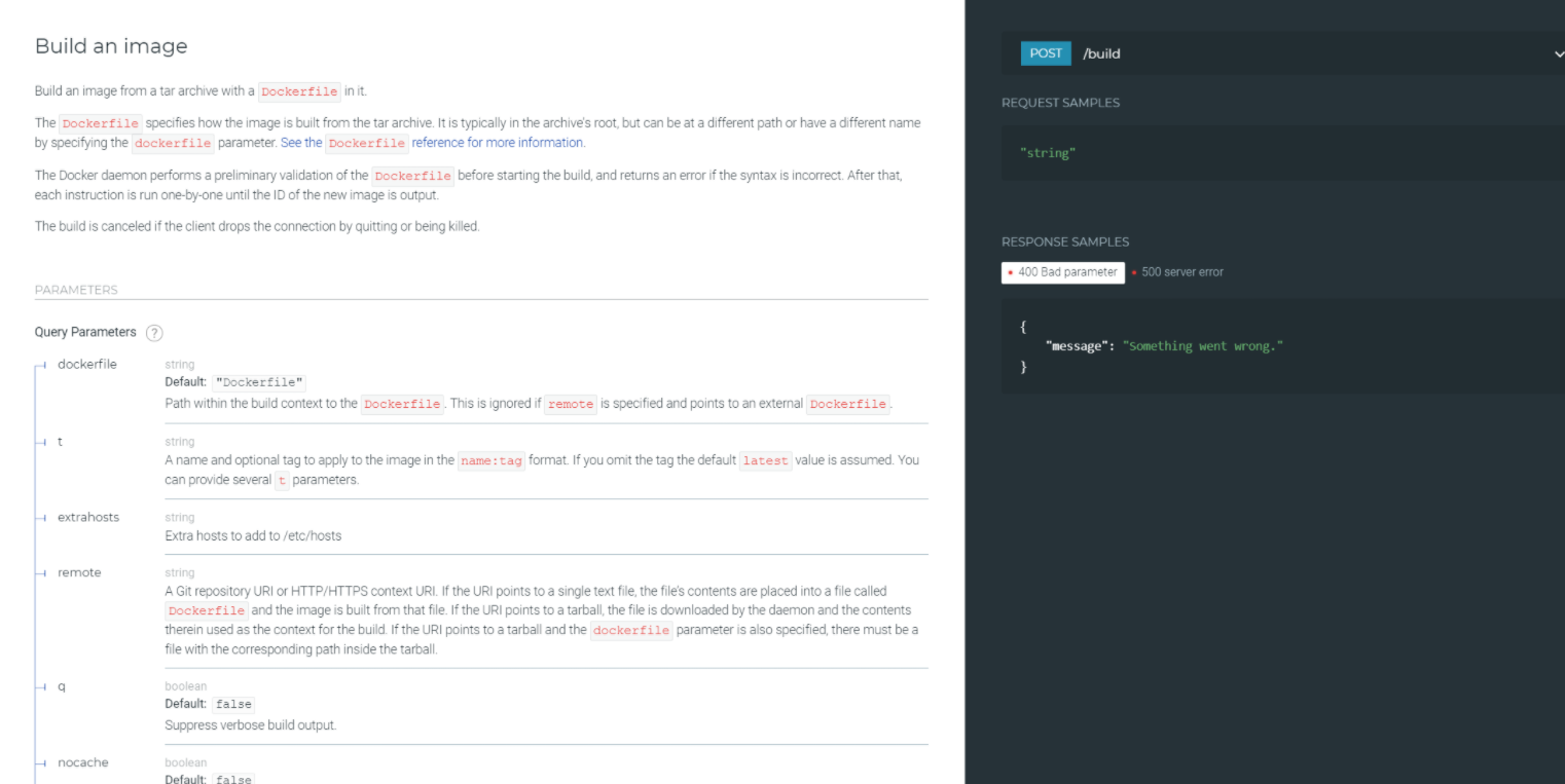继续翻越Docker文档,我发现了另一个API,Build an image