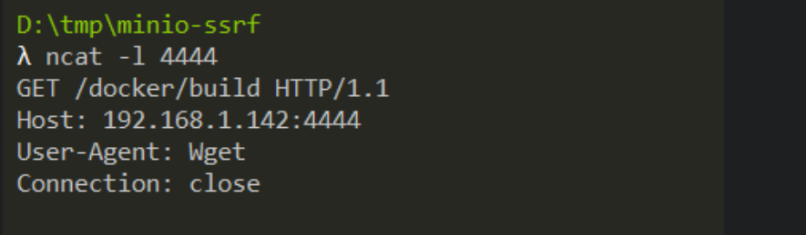 所以,我尝试编写了这样一个Dockerfile,看看是否能够build这个镜像,如果可以,那么我的4444端口应该能收到wget的请求: