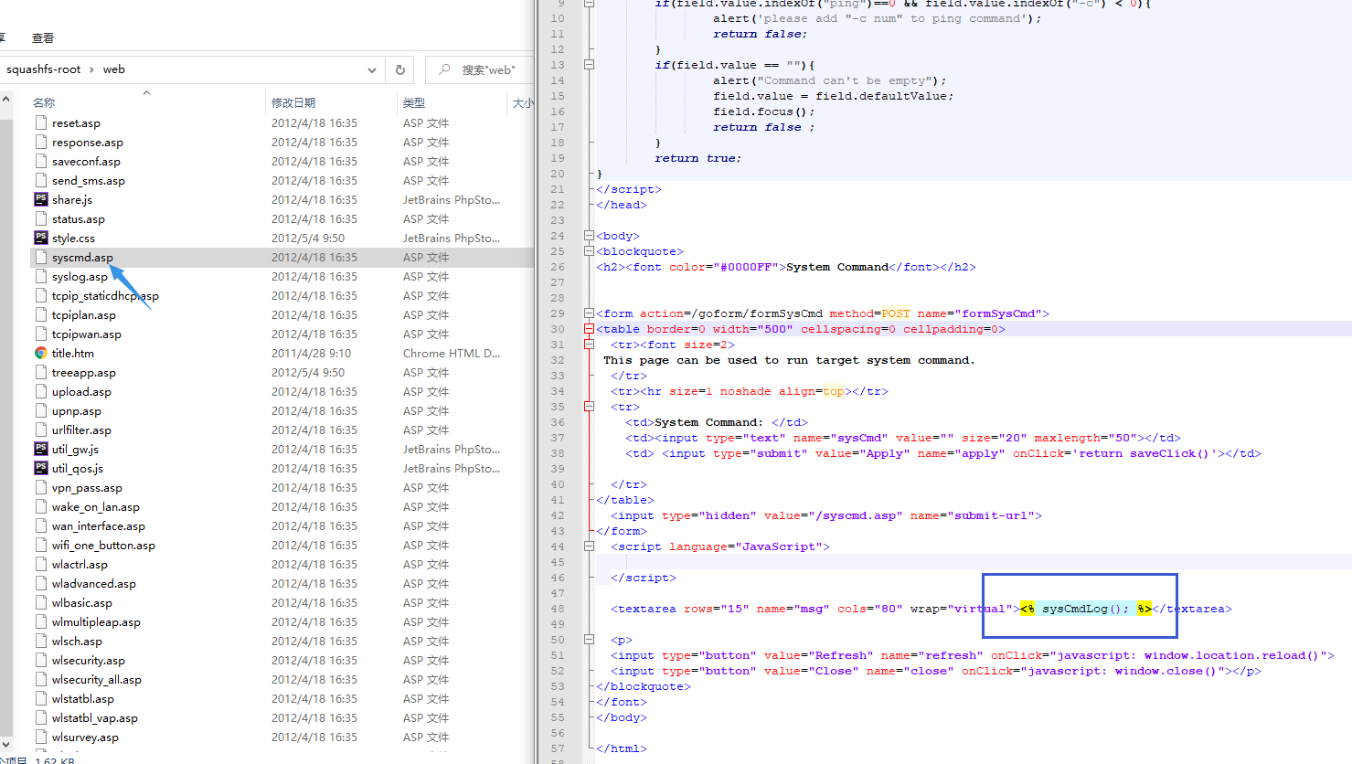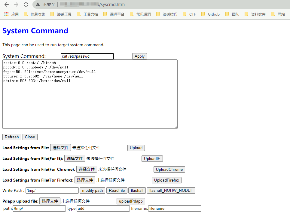 固件中存在一个asp文件为 syscmd.asp 存在命令执行