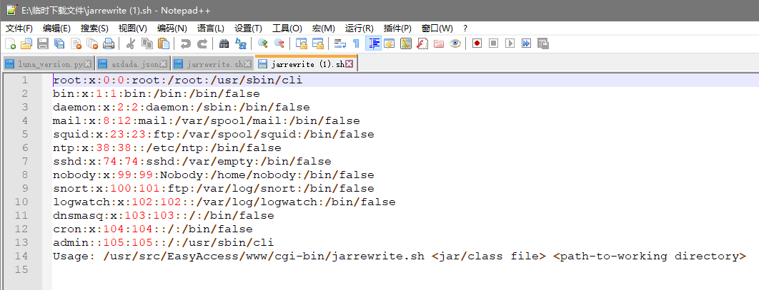 出现漏洞的文件为 /cgi-bin/jarrewrite.sh
